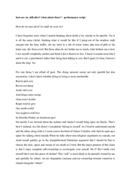 The performance takes place in the same space as the exhibition but the white curtains in the middle are gone and audience seats are set up. It is a small space which can accommodate a maximum of 30 audience members. After all the audience is settled, the blackout signifies the beginning of the performance, the first light is on and casts a silhouette of the head of the performer onto the white curtain at the upstage area-the performer starts a monologue with the sentence “how do we stay alive? Or shall we even try?” As she utters the words, we can see her movement from the silhouette. She then comes out from behind the curtain, being amongst the audience, then gradually moves towards the stage as she continues a monologue of some 30 minutes in length. She starts with talking about her suicidal thoughts and how this experience has led her to realize that her life does not completely belong to herself- she support this account about her feeling of lack of autonomy with the experience of the pandemic. She gives examples of uneven distribution of vaccines and healthcare resources, talks about how citizens are obliged to follow pandemic prevention measures in a situation where their own moral judgment does not really matter to the decisions of the policies. She shows pictures on how the Chinese government welded metal bars to residential buildings so that no one can exit. She questions whether her life belongs to herself, her family and friends or the country which she was born in. She then talks about her identity as a Hong Konger. She was born before the Handover when Hong Kong was still a British colony before passing the sovereignty to China. She lives her life in this post-colonial time but yet she could not identify with the Chinese government either. The stage becomes all red and seemingly taking up all her courage she shouts out: ”My life does not belong to me. I don’t have sovereignty over my life.” As she exits the stage, we can still hear her voice but in a slightly distorted way as if she was speaking through an old telephone and saying: “The promised ‘One country, two systems’ will end in 2047. In 24 years from now, Hong Kong - my home - will eventually be ‘just another city in China’, the clock is ticking. If I choose to stay in Hong Kong, eventually I must become or admit that I am already a Chinese national. Do I have to? By then, it will probably be a taboo to call myself a Hong Konger.” Walking back on to the stage from the downstage left corner, the audience can then see her and a shadow of her full body casts on the white curtain. At the end of this sentence: “But taboo or not, in the end even the government cannot forbid me to kill myself, perhaps that’s the least sovereignty I can have.” she stops walking, with her back facing the audience.