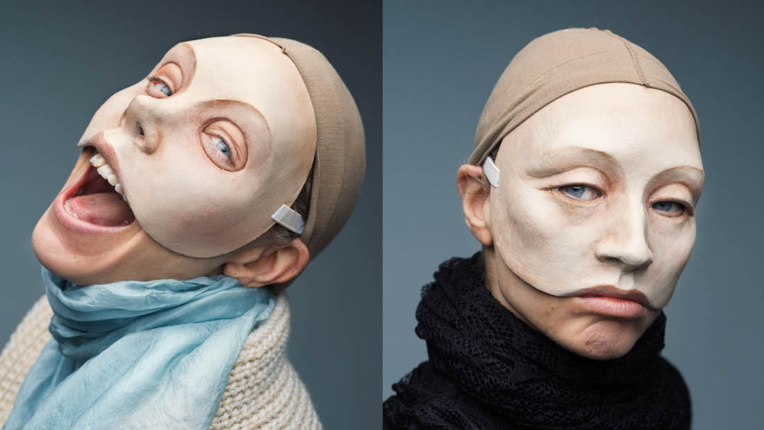 Komediennerna hade generellt rundare ansikten och näsor, krusigt eller ostyrigt hår och log och tittade rakt in i kameran. Utifrån de bilderna och mina texter och fantasier om de två olika typerna skapade Amanda maskerna.