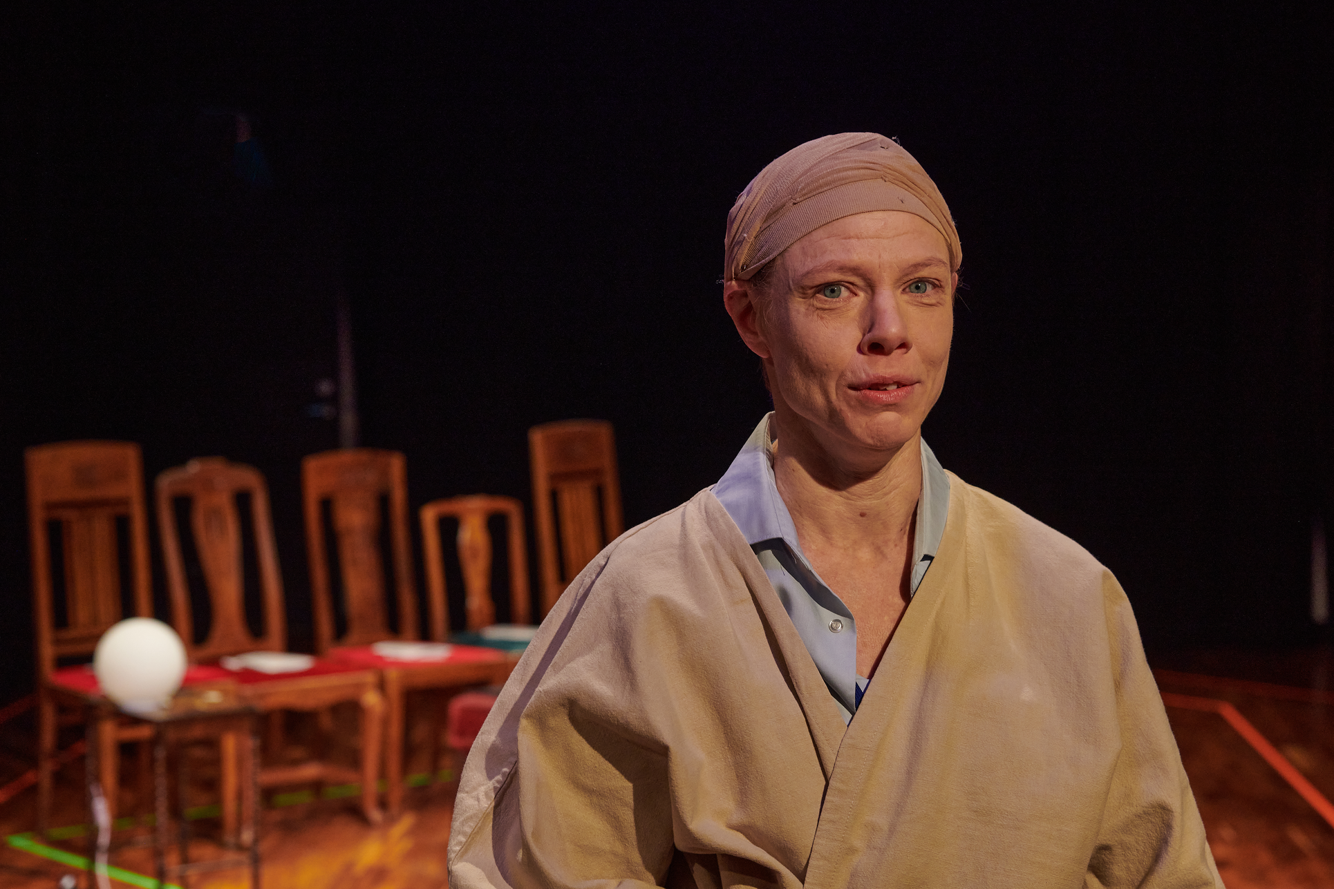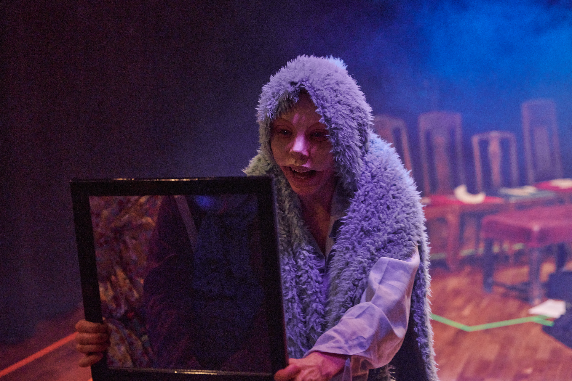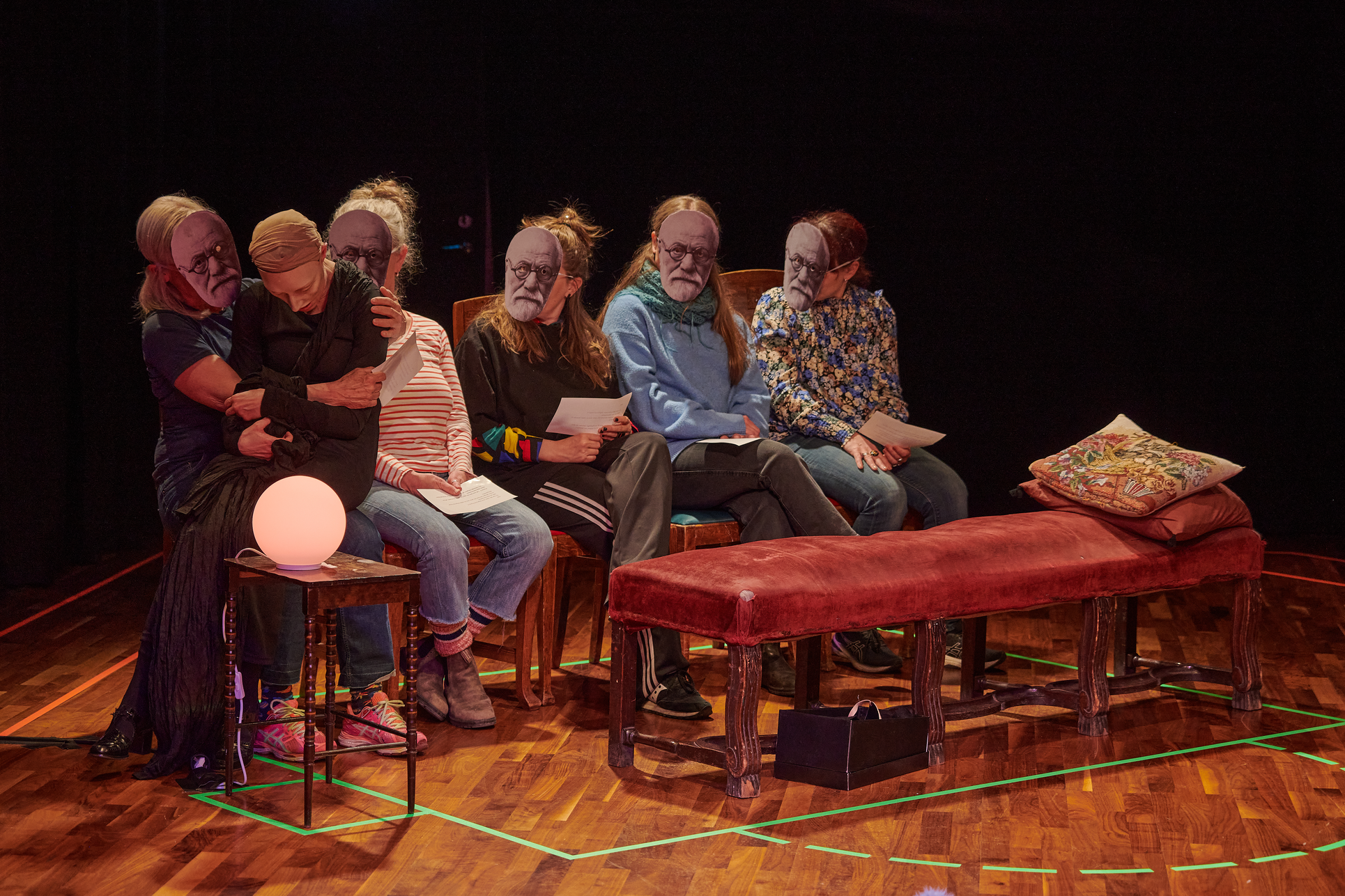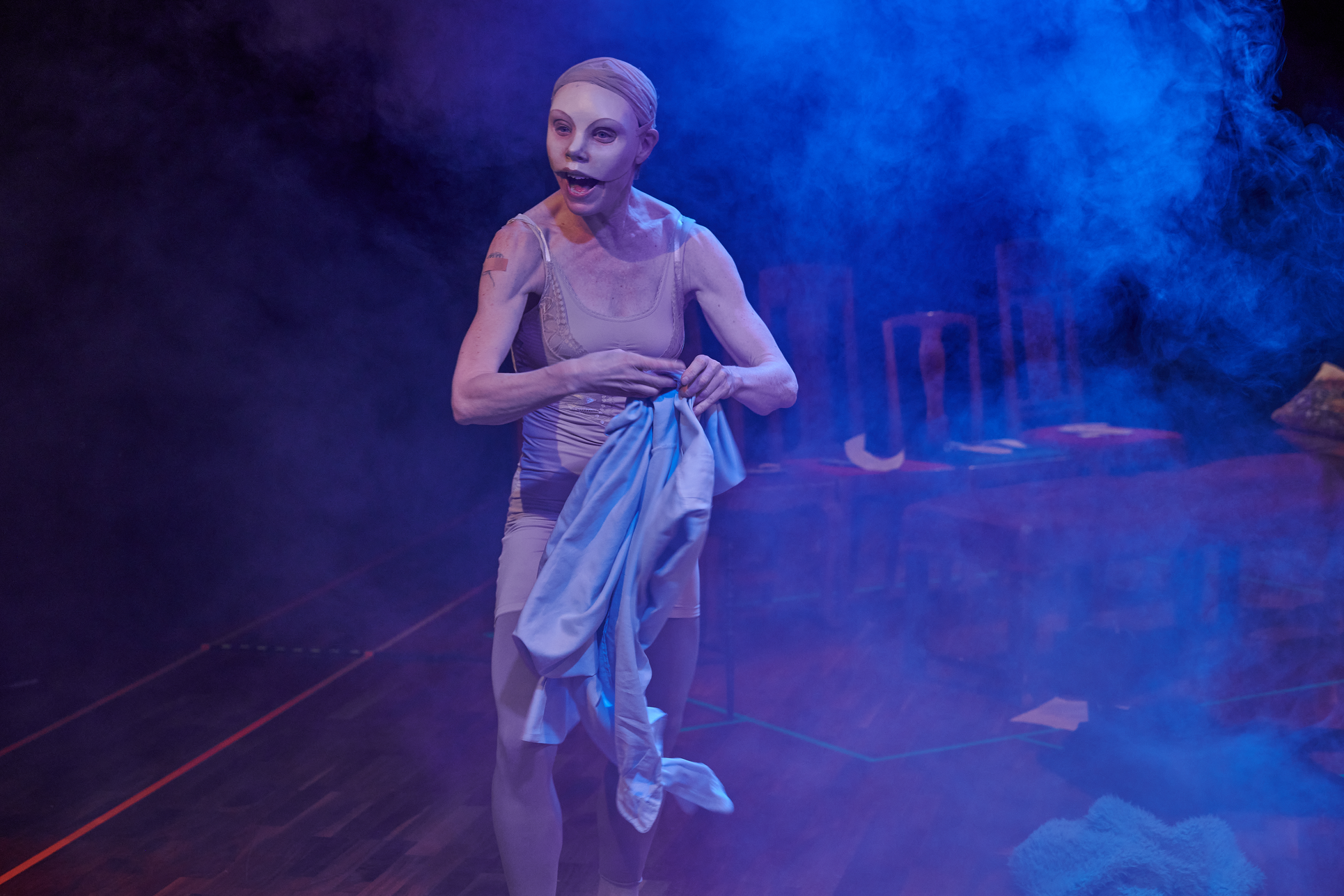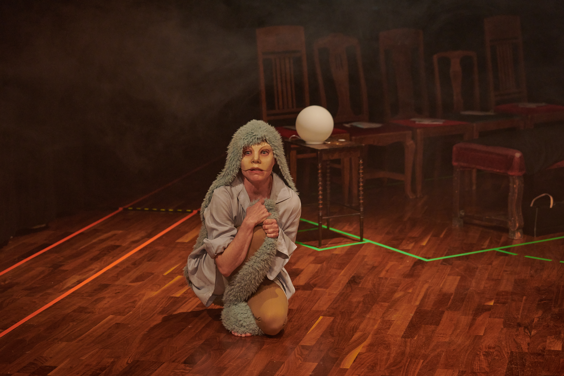 This exhibition shows my project from the Master in Acting 2021-2023 at SKH in Stockholm. The essay is called "When we meet" and the performative part "How do we let the audience in?" As an actor and clown, I have worked in many different rooms and with many different audience agreements. Everything from stage-salon situations where the audience knows exactly how to behave and what their participation looks like, to playing for only one person in a hospital bed or in a small rowing boat, where participation must be clearly negotiated and communicated. I've met adults who are world masters of theater etiquette, but can't answer a question if asked from the stage, and I've met children who are wild first-timers who engage in intense dialogue with us on stage. I am interested in the dialogue between actors and audience and in audience participation. What standards and agreements are they regulated by? How does the fear of making a mistake, breaking the norm, affect the experience of the performance? Does that fear of shame limit what is possible in the theater? I have also wondered what roles the audience can have, what in a work communicates this role, and whether the audience can change roles in the same work. In "How do we let the audience in?" you can read about the work with Eva and Margaretha, two half-masks who are both actors but in whose artistry the audience plays very different roles.