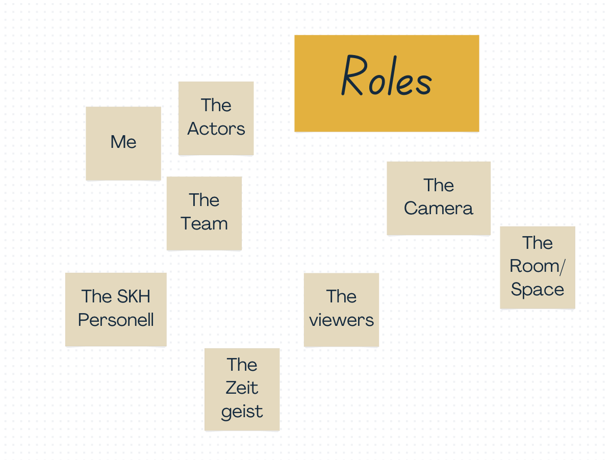 ABOVE: We have now, as the yellow color indicate, shifted to the building blocks of the documentary. Above you can see the suggested roles in the documentary.