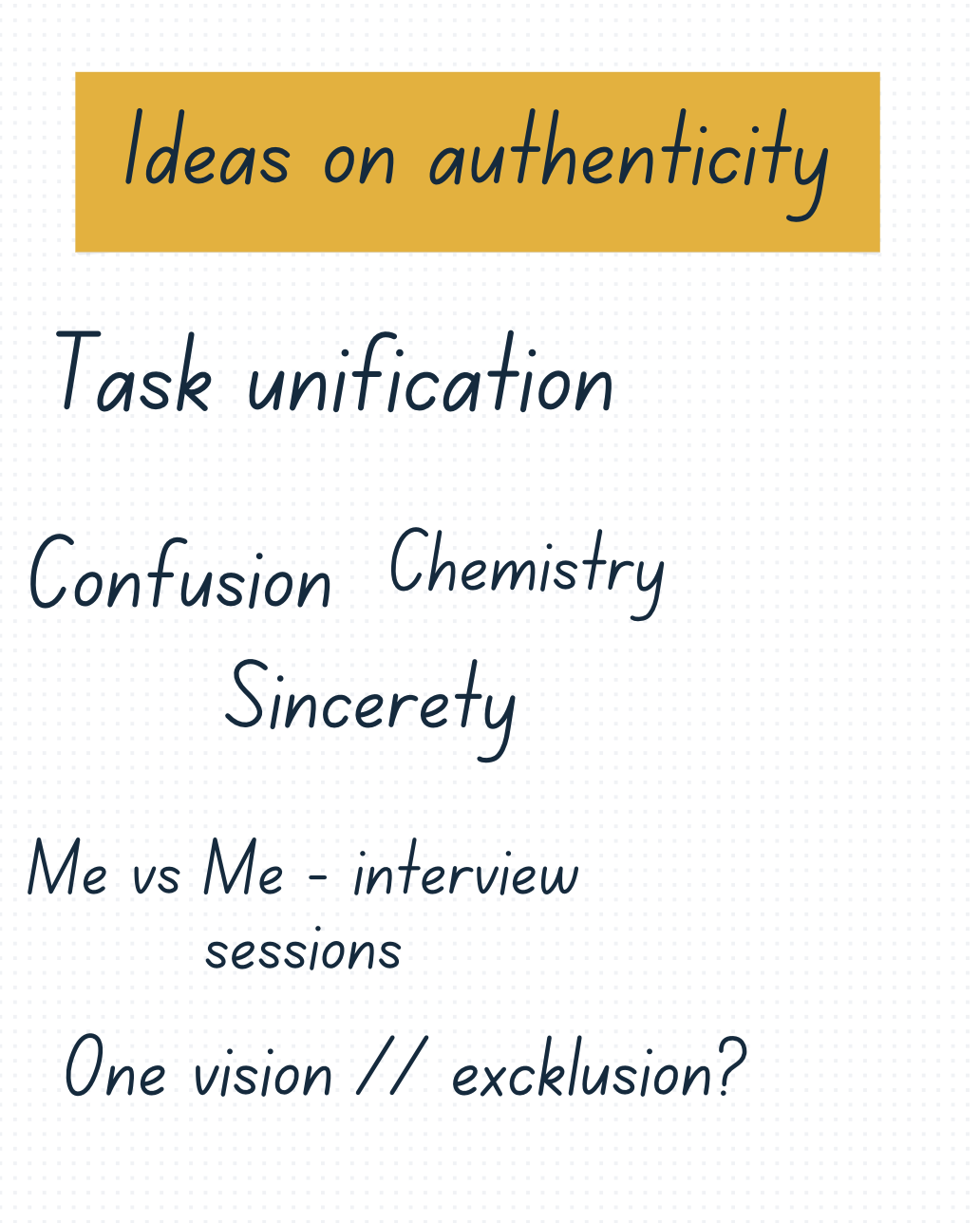 I would put it like this. I need to execute my ideas in order to track my progress. And since “the authentic voice” is evolving (in my head) to a process where I want to experiment with my own authenticity, compromise and collaboration - maybe team members could feel exploited taking part of an experiment there the roles might turn. One way to approach it, is to be utterly transparent - the risk with being transparent is that the people around you quit being authentic and just play their part.