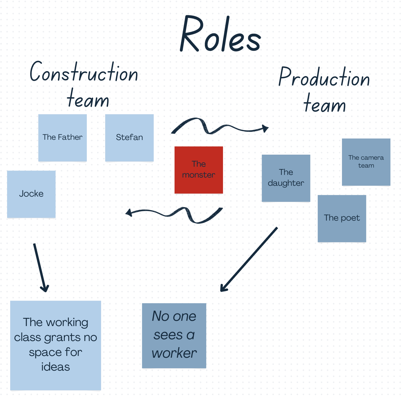 An investigation? I strongly believe that there are not the human beings present in the room/in front of the camera, that play the major parts in a documentary. The camera, the room and the zeit geist might be more important than the other people surrounding you. If there is time, I will divide the documentary in chapters named after the different roles. But that demands a whole other level of investigation. But there are topics that triumph the zeit geist in this specific project - and that is how I evolve as a filmmaker. For far too long, I’ve been afraid. Afraid not to be able to make money of my passion, being unable to create stories that are strong enough, that even if I would make a great film, I wouldnt have the proper network to distribute it. Fears like these has restrainghned me from reaching perfection. Therefore I’m grateful that now I’m able to make some achievements by workning through this project.