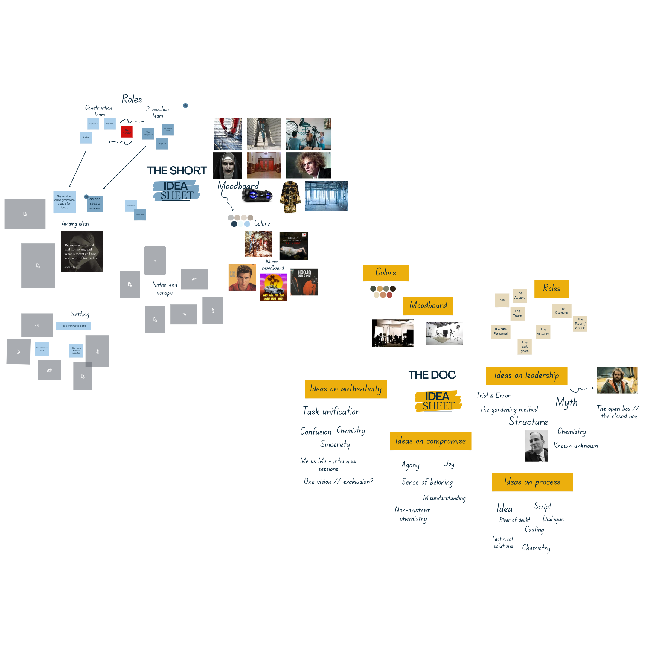 In this section, you’ll see screenshots from the mind map I’ve made that are planned to illustrate a sort of mood board and a misch masch of ideas on shapes, images and characteristics of both the feature and documentary short.