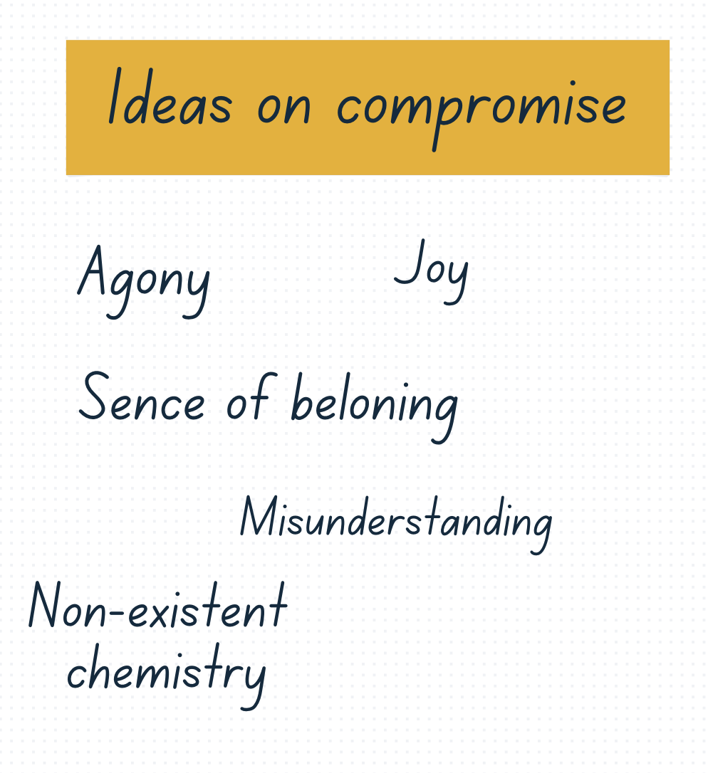 ABOVE: This is the topic that I’ve chosen to come back to in this project, the relation and conflict between authenticity and compromise. I’ve identified a few pro’s and con’s with a process being charactarized by compromise.