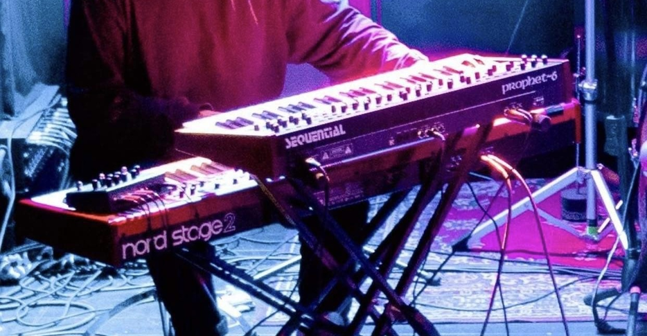 Harsha’s keys rig consists of Nord Stage 2 Digital piano and Prophet 6 synthesizer. Together with the trumpet, Harsha is responsible for creating the foundational harmonic and melodic structures. He uses a synthesizer, digital piano, and also software-based instruments to create and manipulate sounds in real-time.