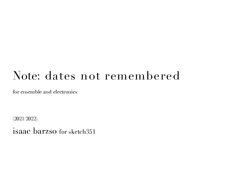 This philosophy of sound gathering is a constant thread in my music; I will point to a number of pieces from my time at the Royal Conservatory as examples of how I apply this practice, but perhaps the best starting point is the first piece I wrote in the Netherlands, Date not remembered (2021) for ensemble and electromagnetic field recording (developed in collaboration with ensemble Sketch351 for flute, trombone, cello, piano, and percussion). I hesitate to spend too much time on this piece, as it is not one of my most successful in terms of pacing and structure; however, though I had begun to develop these techniques of interacting with place through technology and performance prior to beginning my study at the Royal Conservatory, Date not remembered is a key moment for me as the first time that I approached composition as sonic placemaking, with its source material governing both form and musical material.
