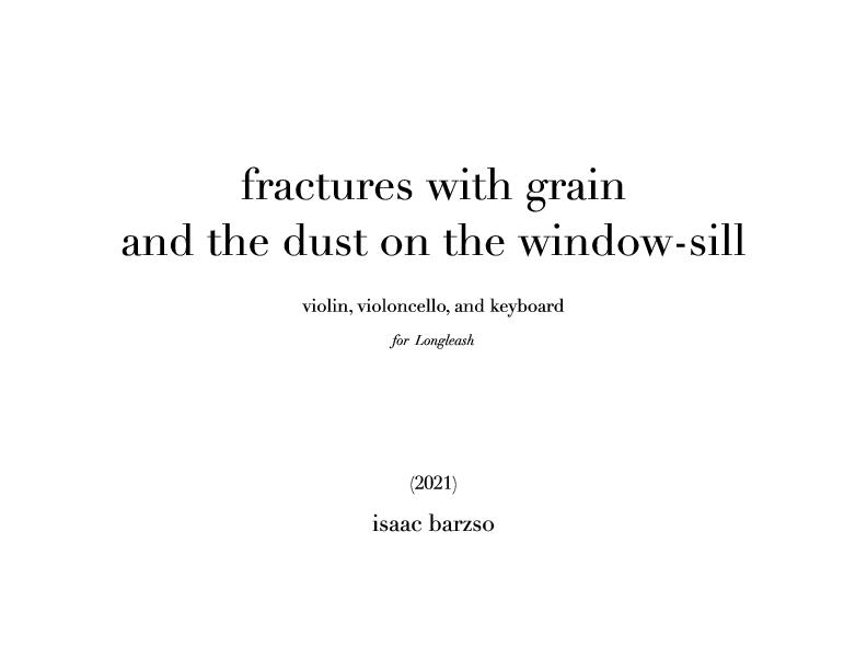 This piece for piano trio is impactful on this research for multiple reasons; firstly, it serves as the first piece of mine which utilized an early version of my analysis-to-notation Max/MSP patch, and secondly it was workshopped and recorded with ensemble Longleash at the same time as my first major explorations with electromagnetic field recording at the Loretto Motherhouse in Nerinx, Kentucky. To date, it has not had a live performance and only exists as this recorded version (fantastically recorded and engineered by Chris Kincaid).