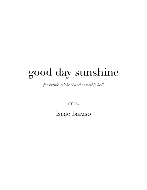 Developed with Hague-based ensemble Kali along with singer Kristia Michael, this work is based on a field recording I took in my hometown of St. Augustine, FL. Winter 2022 saw a significant cold snap in St. Augustine, resulting in a surprising die-off of a number of plants in the area — one which is already beginning to be ravaged by the impacts of climate change. The text is derived from a National Oceanographic and Atmospheric Administration (NOAA) climate analysis from December 2022, when the source field recording was taken. good day sunshine will receive its premiere as part of the Royal Conservatory’s Spring Festival in late April 2023.