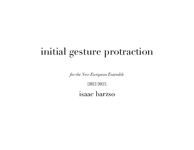 Written for the New European Ensemble, this piece is essentially a sequel to (almost always is nearly enough), taking its name from another song by Tortoise and containing similar inspiration to the earlier piece. In this case, a case of mistaken spectral analysis resulted in the piece’s material — a file was analyzed and converted to notation, but I simply collected a set of pitches from the analysis and subsequently forgot what file I had analyzed. When I returned to the material, it had lost its identity, leaving the piece to become a type of study on ‘creating place’ from something which had lost its relationship to place. This piece will receive its premiere as part of the Royal Conservatory’s Spring Festival in late April 2023.