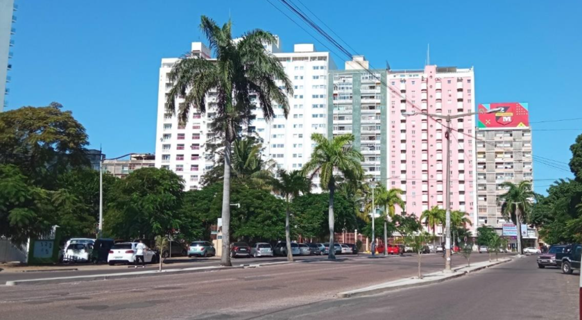 Albie Sachs’ apartment block in Avenido Julius Nyerere (turquoise block); Portuguese embassy in pink block; my apartment in white block.
