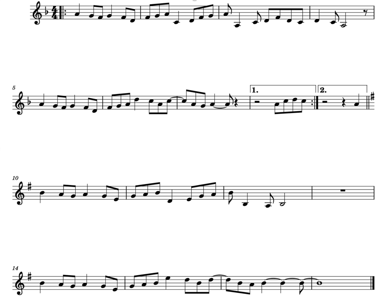 I takt 10 i transkripsjonen av melodien moduleres verket opp en hel tone til E-moll. Dette er et estetisk valg som symboliserer en radikal endring i livsløpet som for eksempel å flytte langt vekk fra hjemmestedet. Dette skaper en følelse av at man ikke lenger er hjemme i den etablerte grunntonen, og alt føles nytt og uvant. Tiden det tar å etablere seg i den nye tonearten reflekterer behovet for tilpasning til en ny situasjon i livet, noe som mange kan oppleve som overveldende og tidkrevende.
