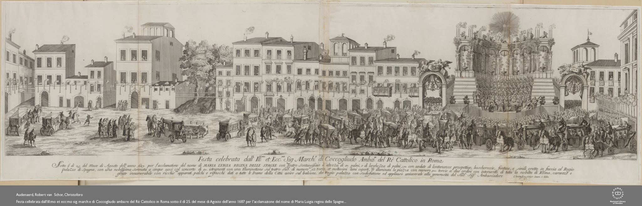 Amongst European cities, only Paris could perhaps match Rome in regard to the liveliness of its cultural life: wealthy noble families, diplomatic representatives, cardinals aiming to establish themselves as possible candidates for the papacy, even a few exiled queens such as Cristina of Sweden and Maria Casimira of Poland – all considered that the best way to acquire prestige in town was by means of giving patronage to artistic activities and, among them, music was definitely regarded as a favourite art. As a result, they were promoting small and large gatherings – sometimes private, sometimes open to the whole town – in which the music was always present and, alongside with the rinfreschi (generous offer of food and drinks), it was often the centre of the event.