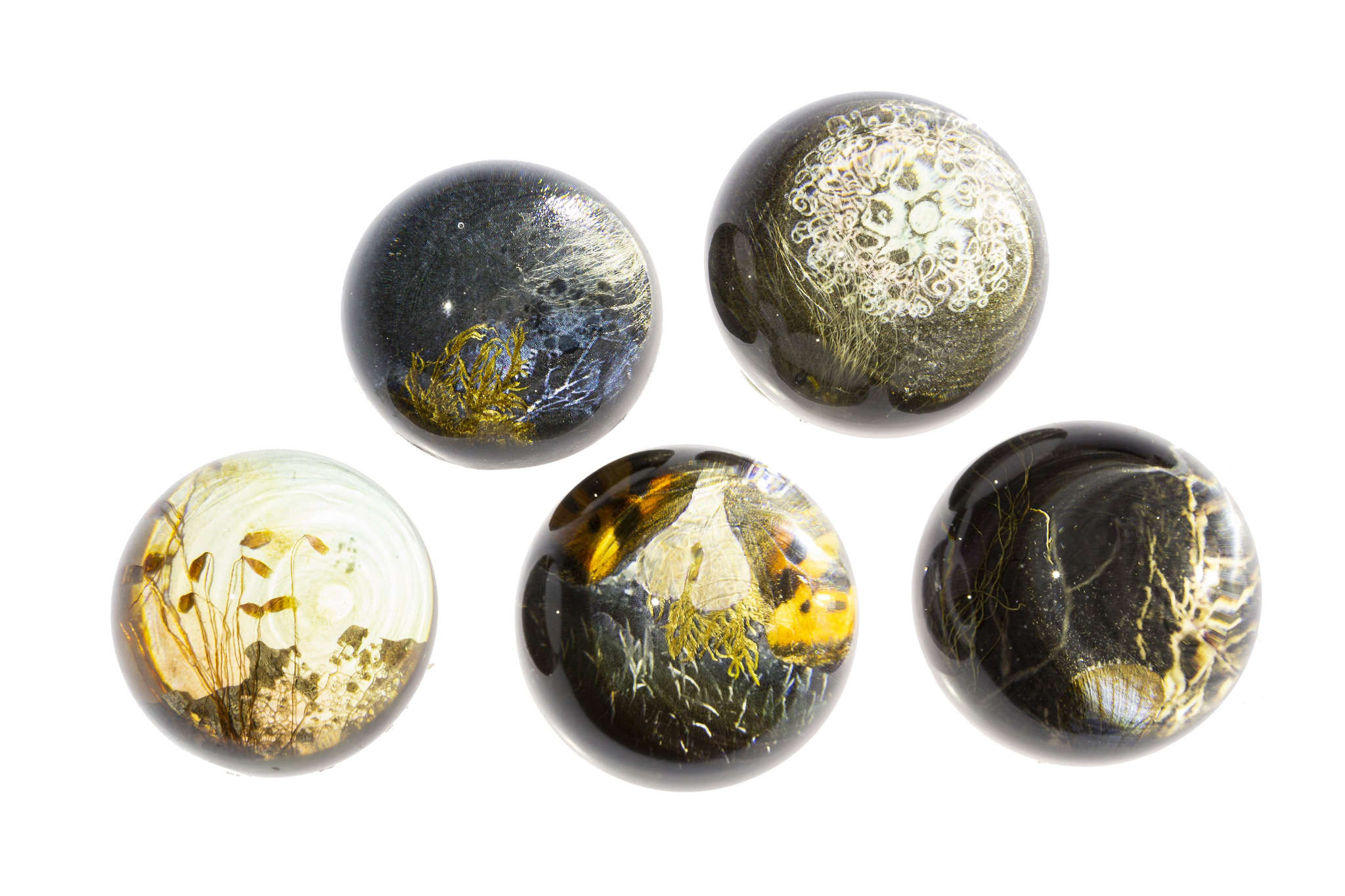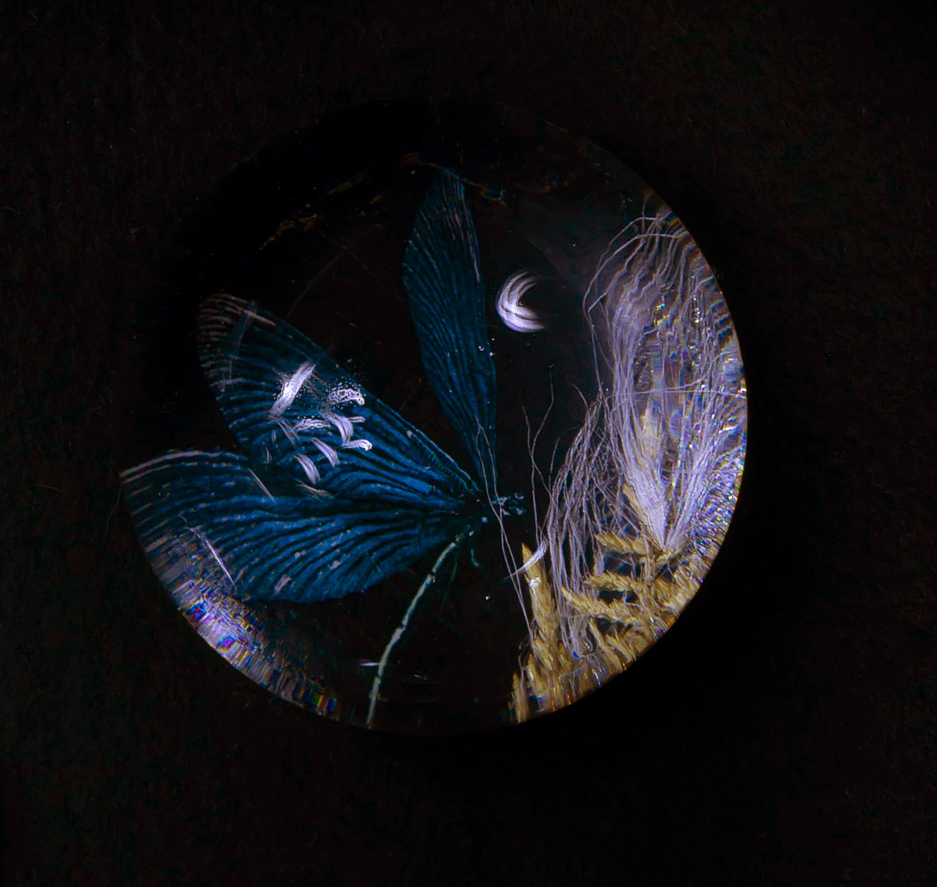 Työskentelin koko loppukesän nautinnollisessa flow-tilassa. Tilasin suurempia, teollisesti valmistettuja ja suurentavia lasikuplia ja lopulta vielä isompia, lasimestarin valmistamia orgaanisen muotoisia laseja, jotka mahdollistivat suurempien ja runsaampien asetelmien teon. Saatoin yhdistellä eri tekniikkoja hyödyntäviä kuvituksia ja luonnon elementtejä aina sammalista ja naavasta hyönteisten siipiin. Myöhemmin lasiteokset saivat yhteisnimen Satumetsän kastepisarat.