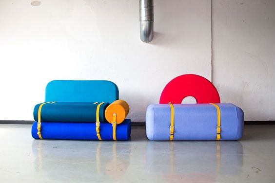 we can already make the sofa's from mattrasses, they are in the building. I can order some bands in pink and green to tie them togeter.
