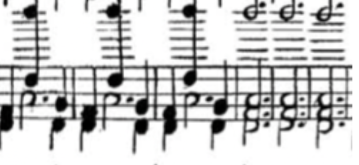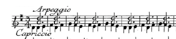 This was all the information I needed to play a piece. Interestingly, there is nothing here really in the way of musical instruction besides the words “arpeggio” and “caprice.” The lack of information is itself a tacit suggestion that the musician take more responsibility for the sound than they would in any of the later editions, and the shape of the notes was much more suggestive to me than the stern typefaces of the nineteenth century, redolent with power structures remembered from my childhood violin lessons. But you know how when you stare at something long enough, its original meaning can shift and easily turn into something else? Well, I stared at it, as is usual when I work on a piece, and eventually saw this in my mind: