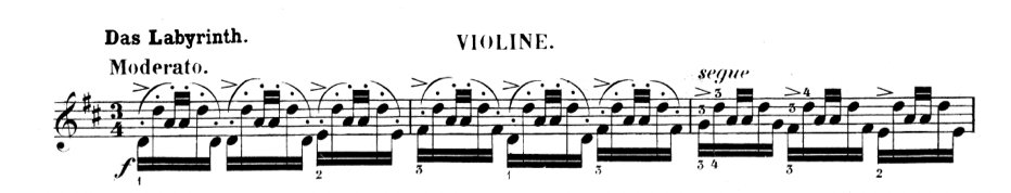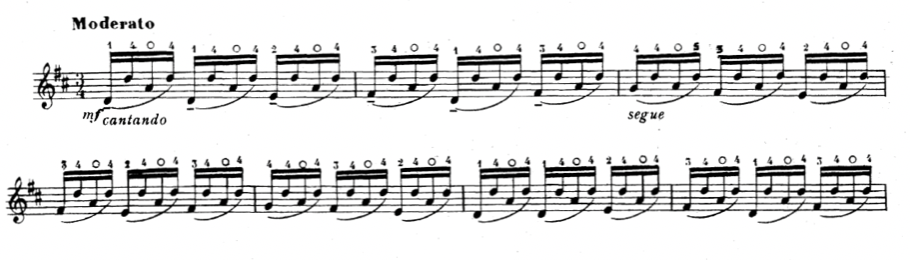 Then there is a version by Ferdinand David in an edition from 1903 (David & Petri, 1903, p. 50) with one of the same patterns used in Franzoni but spiccato this time, no beats per minute marking, simply moderato again, and this time forte.