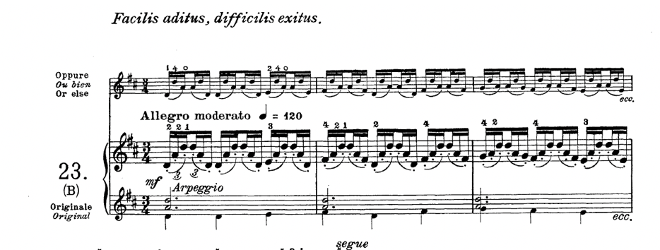 There is yet another version by Romeo Franzoni printed in 1917 that supplies two alternatives (Franzoni, 1917, pp. 62, 66). Still Allegro moderato, mf, same sequence, but the beats per minute is down to 108.