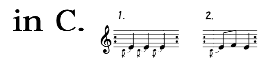 Of all the possible associations I could have made to other pieces, by Locatelli or Vivaldi or Corelli or whomever, I ended up seeing notes from 1964, well over two centuries later. These are the first two measures of Terry Riley’s “In C” (Riley, 1964), widely regarded as the first example of what would become known as the American Minimalist tradition. Since I am a musician in new music I have performed, conducted, and studied the piece. My personal experience made this association possible when I looked at Locatelli’s handwritten notation.