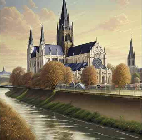 With its cathedral glowing