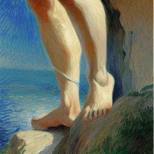 His feet were perched upon a cliff,