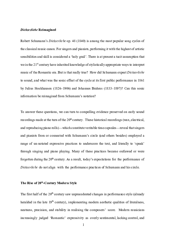 Translations of Dichterliebe can open up space for more kinds of musical voices to perform Schumann’s music and a multitude of perspectives to shine through the story. Translation can blur what we see as the limits or restrictions to performance and open up spaces and contexts for new audiences to appreciate music-poetic works. Translation can allow us to care more deeply for the characters and perhaps even feel or process something new ourselves.