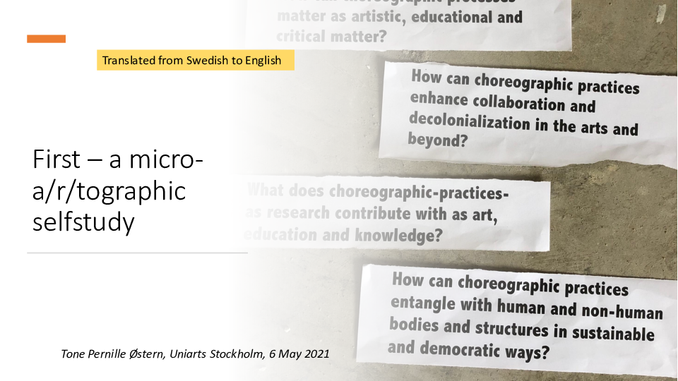 Østern, T. P., Reppen, C., O’Connell, S., & Daneberg, M. (2025). Choreographer/researcher/teacher: Developing a/r/tography as an approach to dance pedagogy at Stockholm University of the Arts in a professional learning community of teachers. Nordic Journal of Art & Research, 14(2). https://doi.org/10.7577/ar.5460