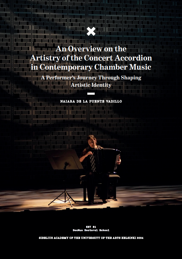 In my doctoral research, I aim to examine the role of the accordion in contemporary chamber music performance practices through a process of observation, exploration, examination, and reflection as an accordionist. The focus of this project is centered on four doctoral concerts, in addition to my own embodied experience as a professional musician in Finland and Spain, working with various ensembles and musicians. By integrating artistic processes, outcomes, documentation, interviews, and text, this research aims to contribute new insights and findings to the field of artistic research and to provide a more comprehensive understanding of the complexities of modern accordion performance, professional career, and education. This doctoral research project makes an original contribution to the field by exploring new knowledge and understanding related to artistic identity formation, specifically within the community of concert accordionists. By reflecting on the evolving identity of concert accordionists and considering their potential needs, this research sheds light on the present and future directions in the field. In addition to my own experiences and observations, I have relied on the valuable work conducted by predecessors who have researched various aspects of the concert accordion. The full scope of this doctoral project includes four artistic components (four concerts) and an artistic doctoral thesis comprising an integrative chapter with three interrelated thematic sections. Section One delves into the aspects of the artistic possibilities of concert accordion in contemporary chamber music repertory. Section Two will analyze and examine the evolution of the accordionist's artistic identity formation, while the final section will provide a personal perspective on the evolving identity of concert accordion players and their potential needs within the field and proposes steps for their continued growth and development in the future. Keywords: artistic research, embodiment, classical contemporary music, chamber music, accordion, artistic identity.
