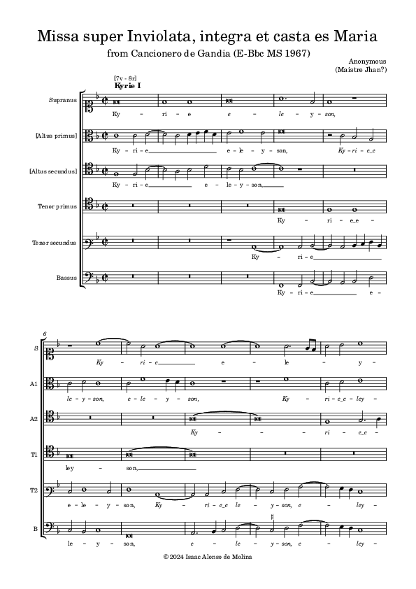 A six-part polyphonic setting of the ordinary of the Mass survives as a unicum in manuscript 1967 of the Biblioteca Central de Barcelona, Spain. Although it is clearly the most significant piece in the manuscript, it has received considerably less attention from specialized ensembles than the rest of the repertoire contained therein. This may be due to several factors, chief among them being that the manuscript provides no indication of the composer’s identity. Such anonymity is quite common when dealing with early repertoires. This research aims to address this situation critically and offer several practical, performer-oriented strategies to overcome it.
