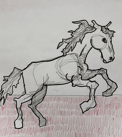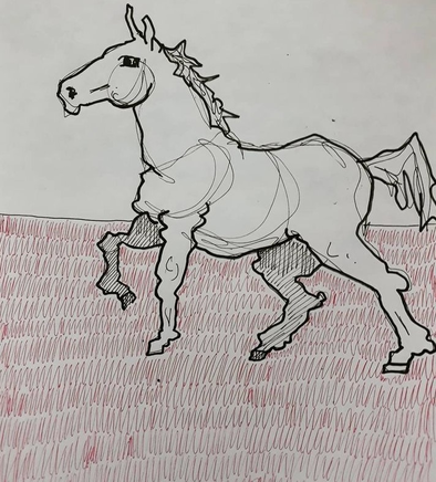 HORSE HORSE O GIRL (?) READ EAT HORSE O.