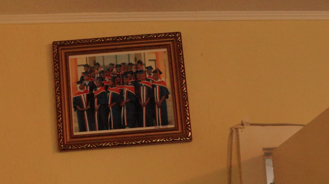As I was putting on my coat, Keziah brought over a framed photo and pressed it into my hands, explaining that this was her Junior High School class: the photo had about a dozen young people, boys and girls in blue scholar caps and gowns. She pointed out herself and her best friend, standing next to her. She said this photo was taken months before the actual graduation, which is why she was in the photo. She told me that she went to a Montessori school in Ghana and that it was "really, really expensive" – she said this a few times, with big eyes, emphasising it.
