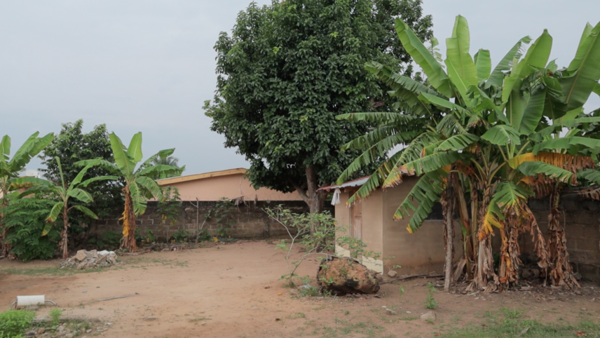 The others went inside and Keziah showed me food plants in the garden: first a shrub with little, pea-sized green berries called ‘adrebu’ (?), we had to Google it for the English name: turkey berry. She said very healthy, they give a lot of blood (as in, generate blood in your body; indeed: on Google, said rich in iron), cook them up into stew, blend them. Also cassava, plantain, pear tree, ‘basilikum’. About the basil, she said "We’re so lucky we can grow it here [in Ghana], in Germany we have to buy it."