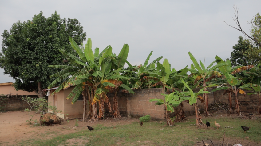 The others went inside and Keziah showed me food plants in the garden: first a shrub with little, pea-sized green berries called ‘adrebu’ (?), we had to Google it for the English name: turkey berry. She said very healthy, they give a lot of blood (as in, generate blood in your body; indeed: on Google, said rich in iron), cook them up into stew, blend them. Also cassava, plantain, pear tree, ‘basilikum’. About the basil, she said "We’re so lucky we can grow it here [in Ghana], in Germany we have to buy it."