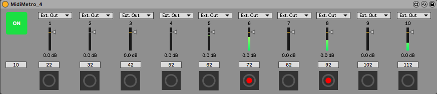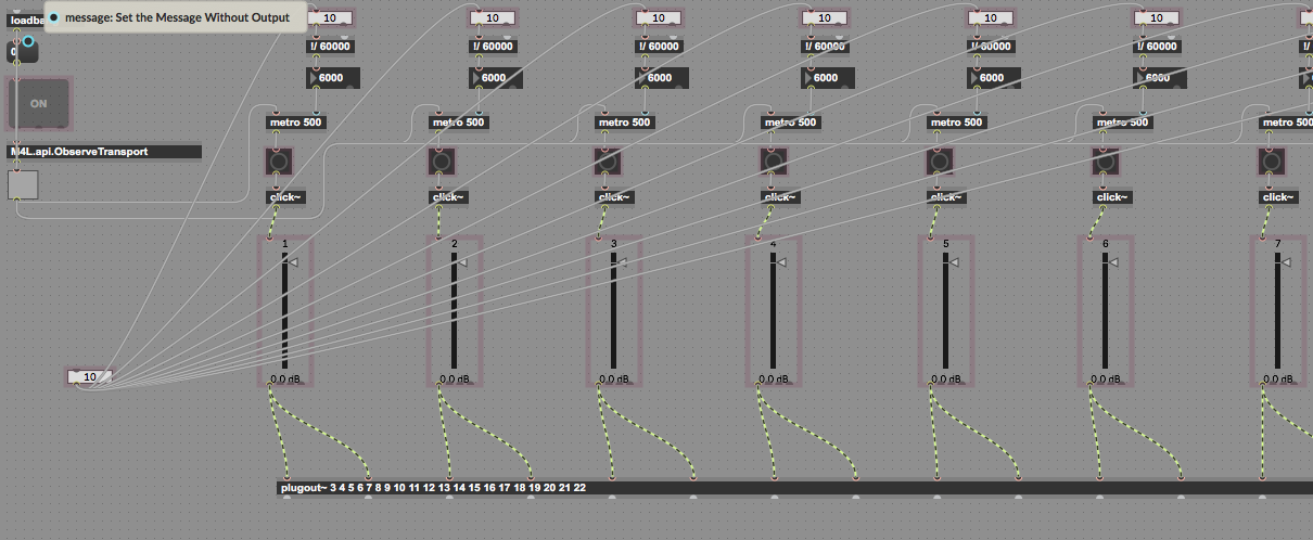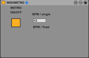 To guide the musicians, I designed a standalone metronome device using Max/MSP. This enabled me to individually control the start and stop of each metronome, send distinct pulses to each player, and adjust the speed by increasing or decreasing it as needed.