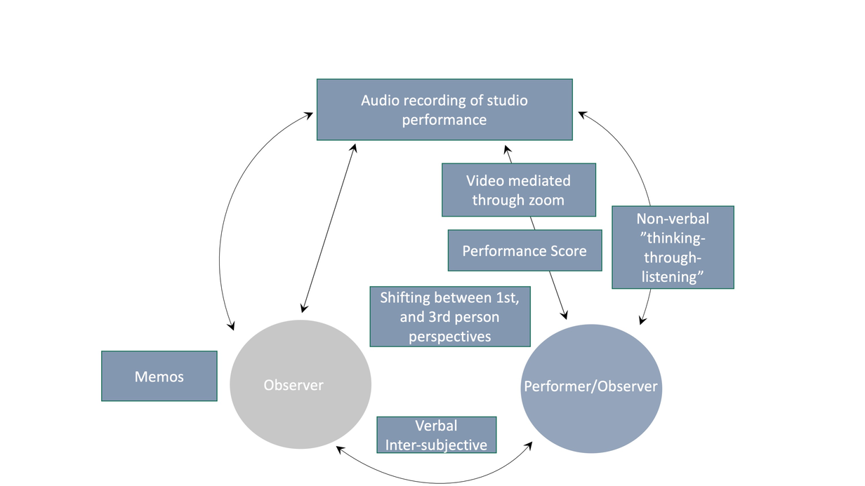 Figure 9: A schematic representation of the stimulated recall scenario with Sofia Härdig, Liv Kaastrup Vesterskov and Felicia Konrad (Stefánsdóttir & Östersjö, 2022).