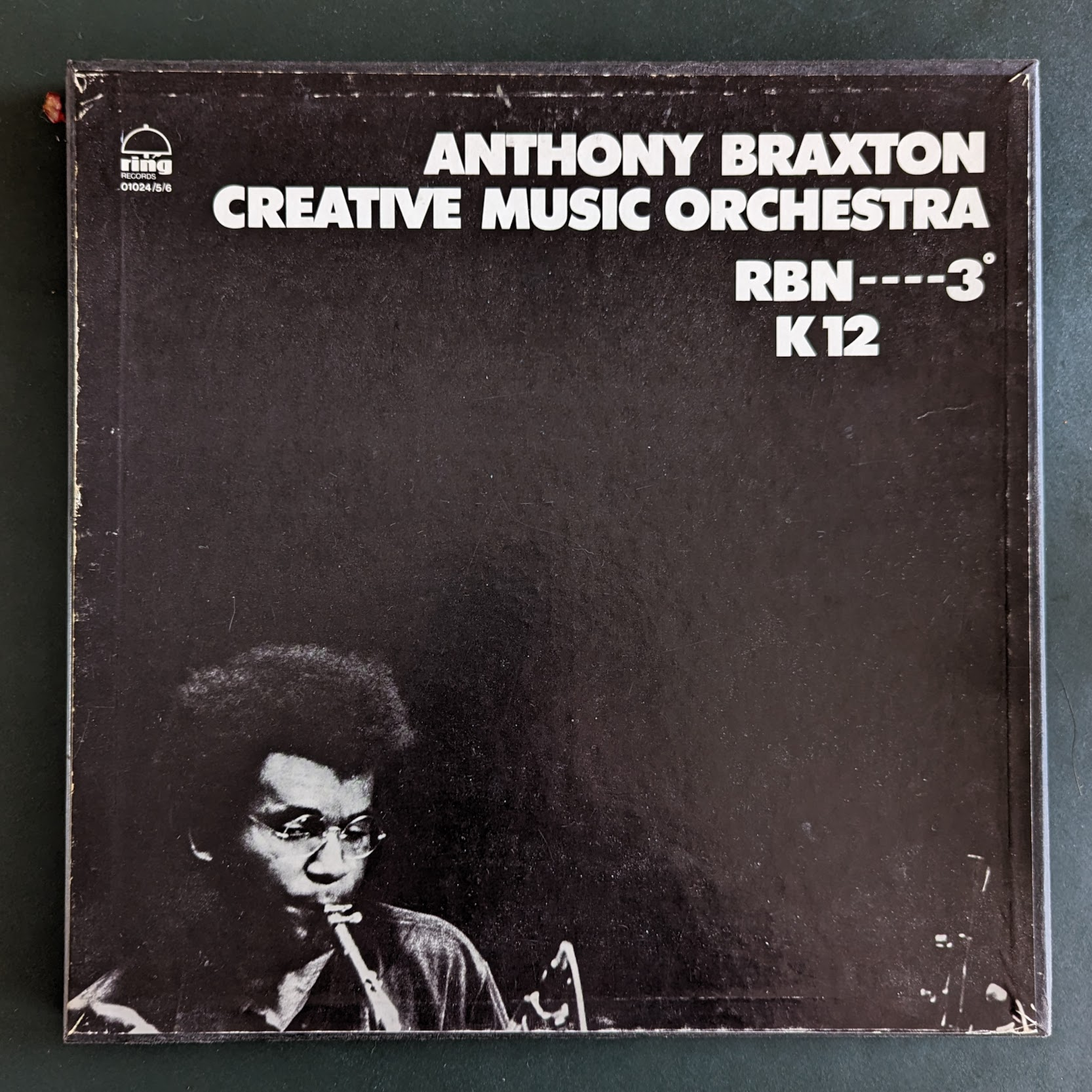 In Braxton's catalogue, we find some early works for creative orchestra that were created during his time with the AACM in Chicago, such as Composition No. 3 (dedicated to Morton Feldman) and No. 11, but these works never received a full performance or recording. It wasn't until 1972 when Braxton was approached by Kunle Mwanga to create a new work for a large ensemble for the French Chatellerault Festival. This resulted in Composition No. 25, a composition lasting over an hour written for a creative orchestra of at least 13 musicians (the score specifies parts for 4 woodwinds, 4 brass, tuba, piano, bass, and 2 percussionists).17 The concert on March 11, 1972, was recorded but not released until 1977 on the Ring Music label as a three-LP box set titled Creative Music Orchestra - RBN—--3°K12 (pour orchestre).