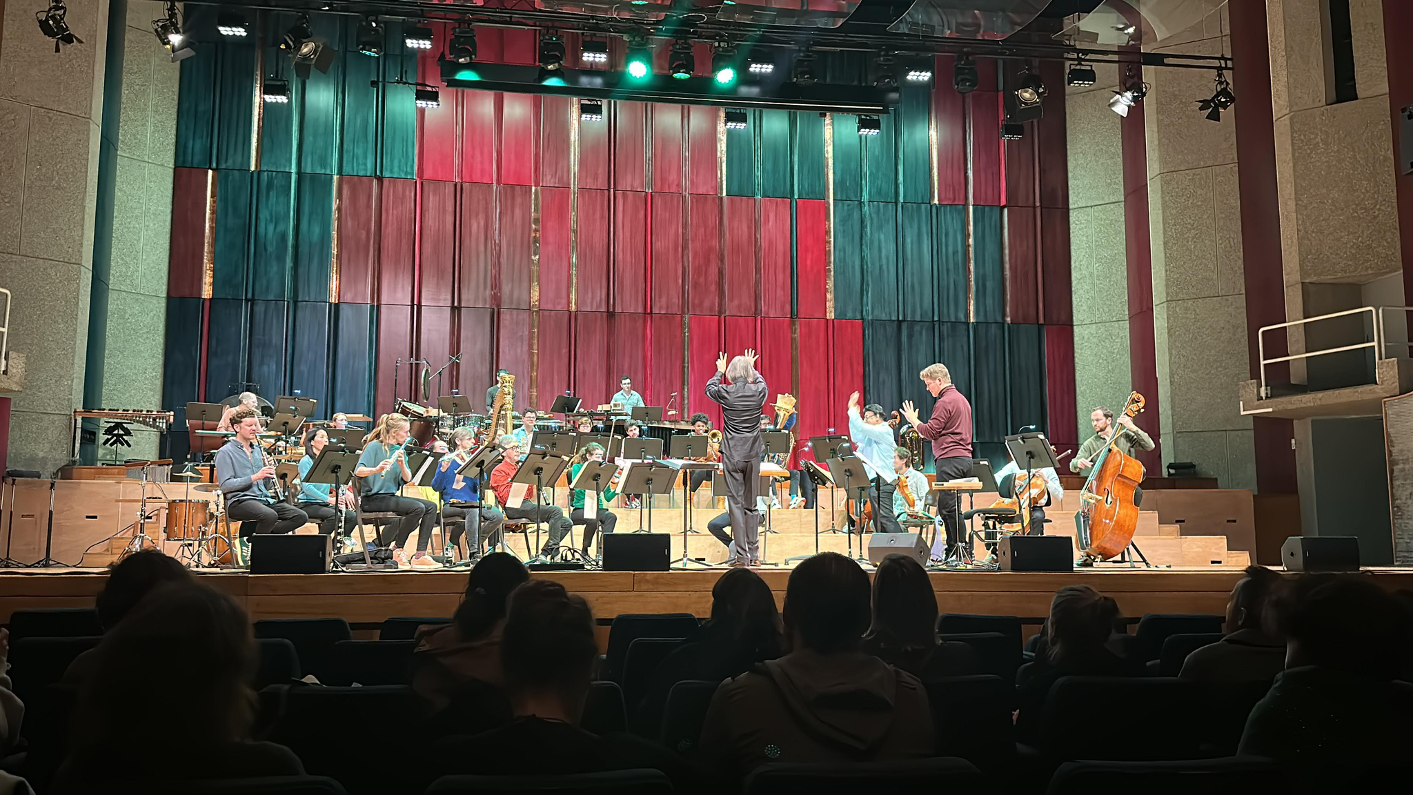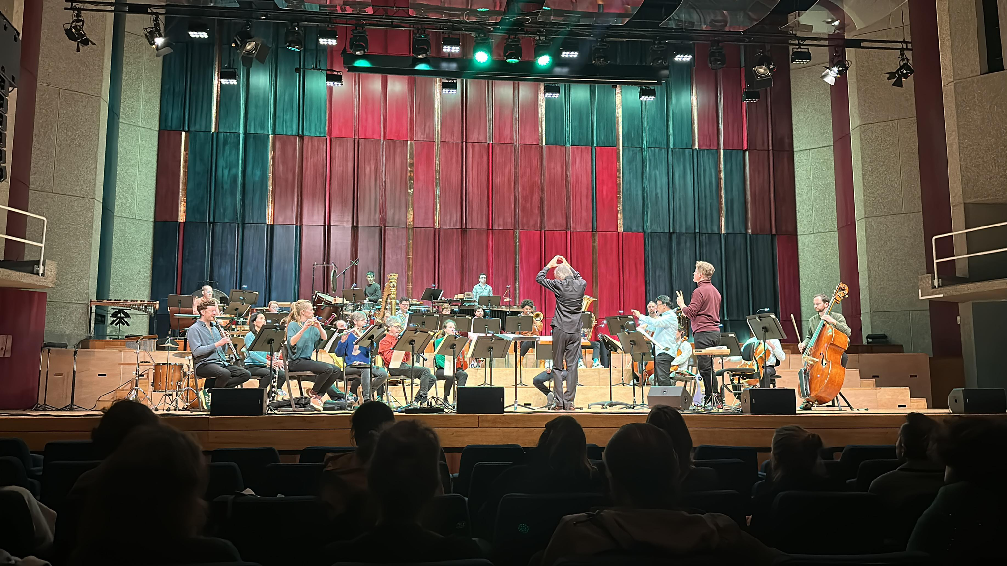 Since all the students were at a graduate level, reading through the different compositions went fairly easy. From the three compositions I selected, No. 58 was the most difficult to put together with its seemingly straightforward marching melody that gradually, but very precisely, deconstructs into sections of solo-improvisations. During the rehearsals, I also decided to add Composition No. 69Q from his quartet book, a piece I had been playing with my own chamber group, and which turned out to work quite well in an orchestral setting too.