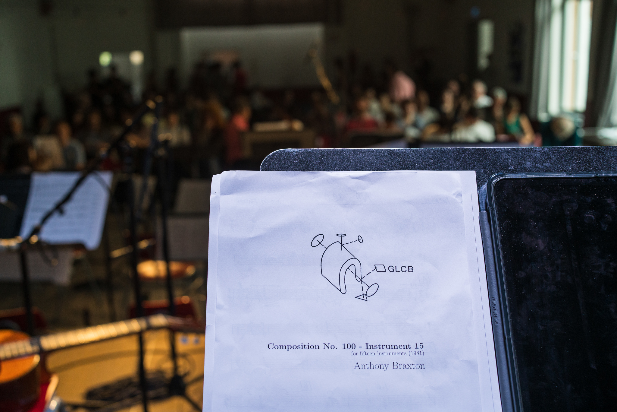 The preparation for this performance was again very different from the previous ones. For the performance with students in Antwerp, I had a lot of rehearsal time, and I kept the repertoire relatively simple so we could really dig in and explore the material in a fairly straightforward way. In Darmstadt, the participants of the summer course came from different corners of the world specifically to learn New Music, new scores, and to experiment. They were very eager to absorb Braxton's experimental approach to orchestral performance practice, and having his presence there obviously also created a special kind of energy around his work. With the Brussels Philharmonic, I entered the institutional world of the classical orchestra, which created its own set of challenges.