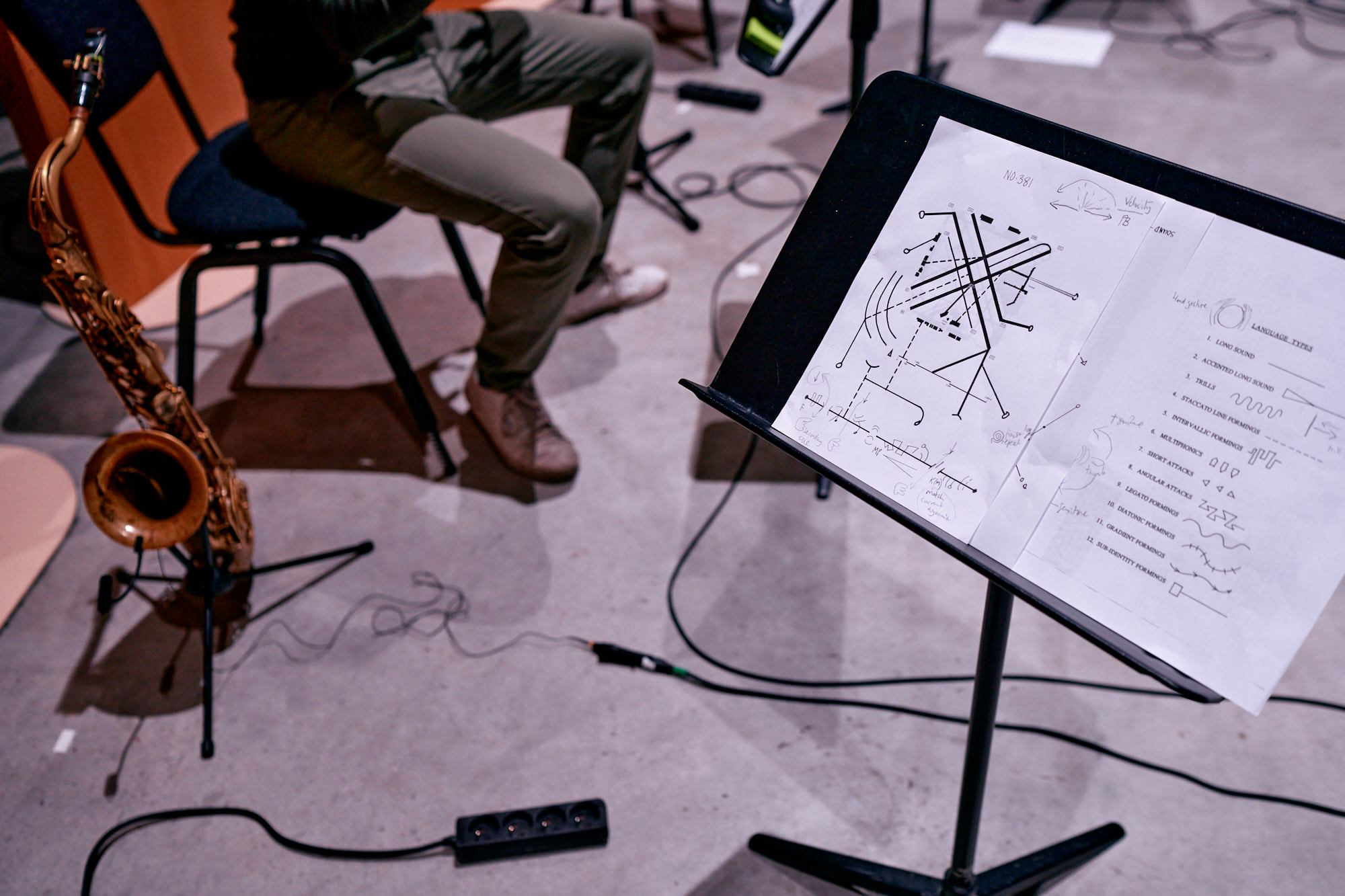 Carl's skillful approach with the technology and his patience in helping me and the other musicians getting familiar with both the technical set up and the multilayered graphic scores and different cueing strategies of Braxton's EEMHM, was incredibly helpful. The current health crisis also had an impact on how we worked: it certainly made evident the visionary aspects and potential of the EEMHM system as a way to continue exploring new ways of playing together. But pandemic and technical innovation aside, it is the profound poetic implications of the EEMHM system that still fascinates me the most. How Braxton associates EEMHM with "Sound Mass Logics", as one of the ways to realize his holistic vision of sonic unification, connecting his entire oeuvre and philosophy in the same event-space and to be able to hear in one instant the depth and richness of his compositional output. This concept of having past-present and future in the same time-space, of dealing with time in a non-linear way, to me seems unprecedented in a musical situation. It is present on every level of the EEMHM system, in the multilayered graphic scores, the cueing strategies, the interaction with the sound collage, but it also gave me a deeper understanding of older systems like Ghost Trance Music and where it fits into Braxton’s holistic philosophy.