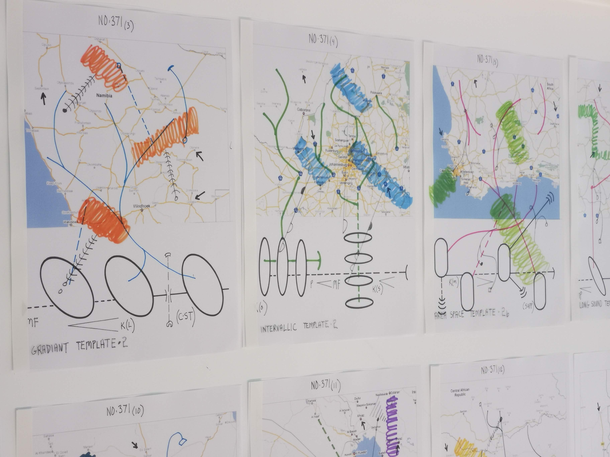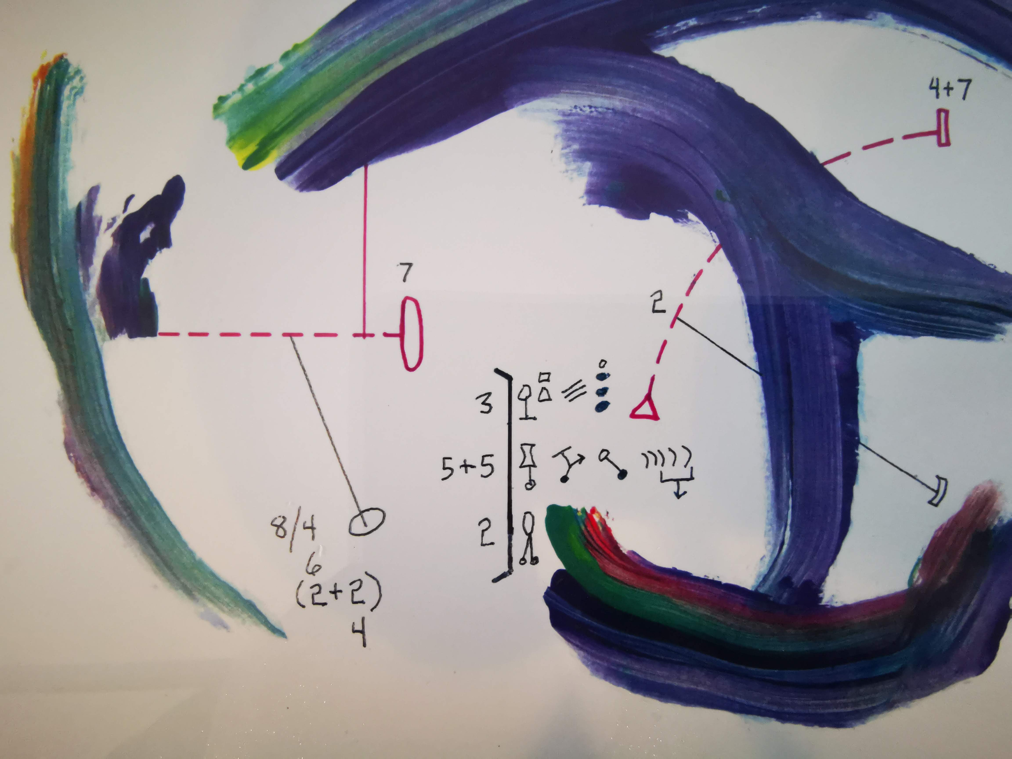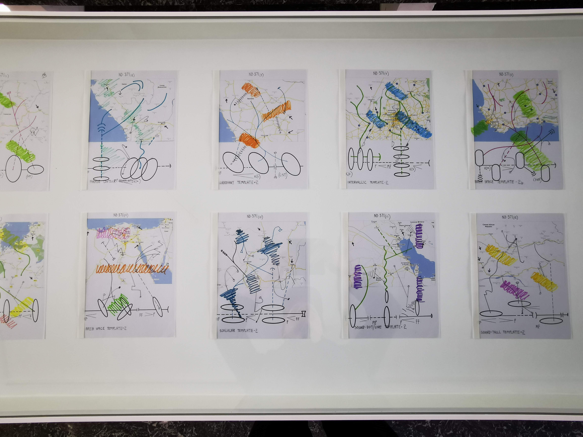 This exhibition sheds light on an overlooked aspect of Anthony Braxton's oeuvre, namely the graphic notation he frequently employed in his scores. This was already evident in his early compositions such as Composition No. 10 (for solo piano) from 1969 and Composition No. 76 (for trio) from 1977. In the latter, he also introduced colors into his notation for the first time. In his more recent compositional systems, starting with Ghost Trance Music in the 1990s, this extended notation, as Braxton himself calls it, occupies an increasingly prominent place. For instance, there's the fully graphically notated Falling River Music, almost like small artworks in themselves. Or the layered scores of Echo Echo Mirror House Music, based on maps, where additional layers of graphic notation can be added to the score on transparent sheets. Finally, there's ZIM music, which transitions from traditional notation into various colorful lines and shapes. From the outset, Braxton always gave his compositions a graphic title. These titles also evolved throughout his career into elaborate and colorful visual collages, some of which are on display here.