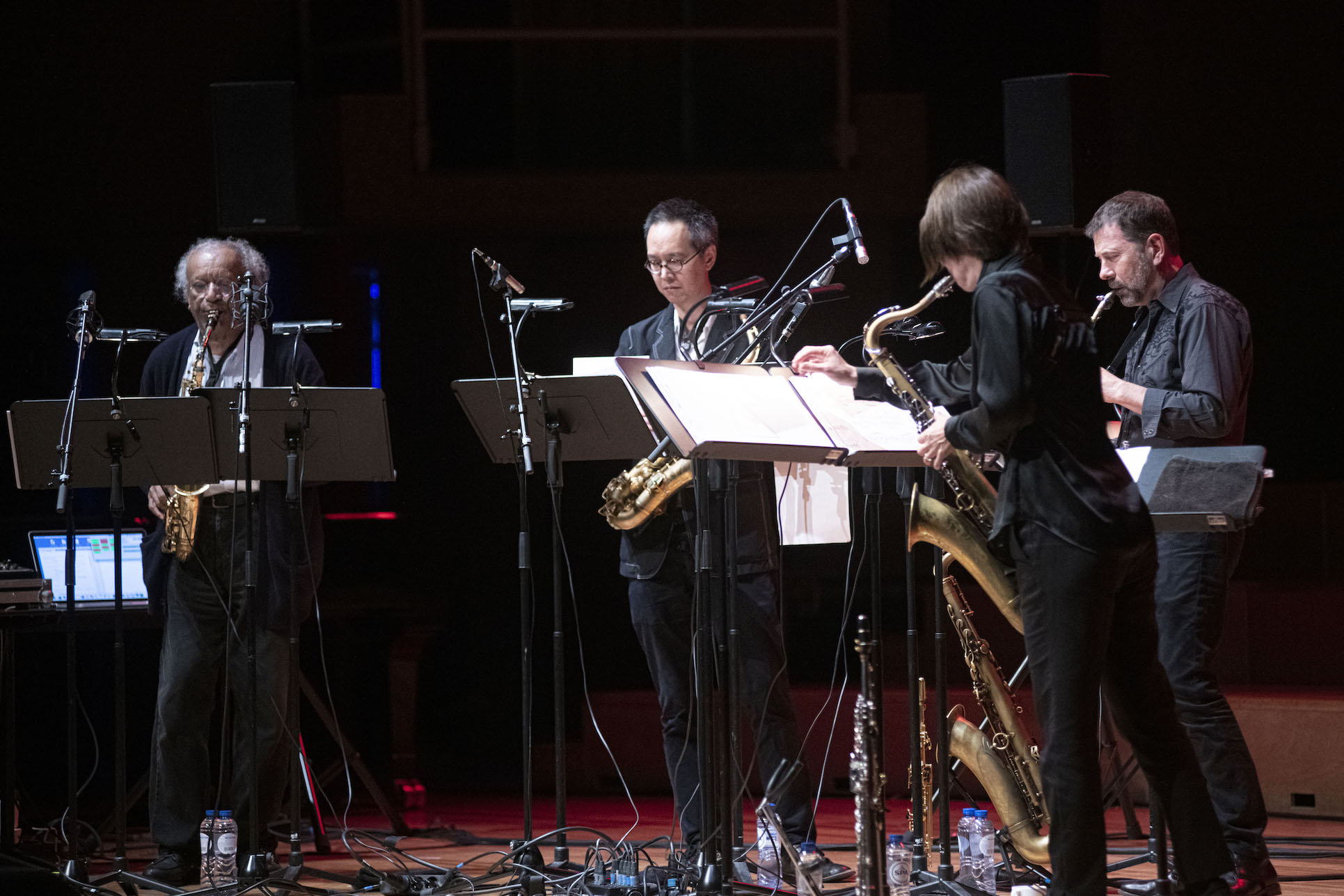 The evening was concluded by Anthony Braxton himself who performed one of his very latest compositions, No. 436, with his saxophone quartet also featuring James Fei, Ingrid Laubrock and Chris Jonas. No. 436 is part of a new compositional system called “Lorraine Music” and besides the instrumental parts also contains live electronics. The performance highlighted Braxton’s unbridled sense of experimentation, and his ongoing search for new and creative musical paths to explore. In the programnotes I cited Braxton’s poetic description of Lorraine Music: