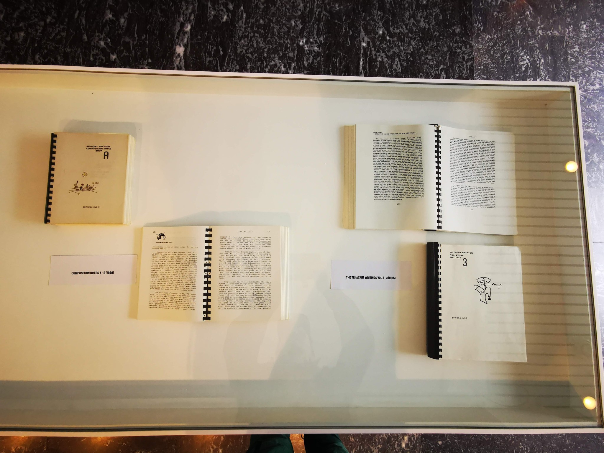 Additionally, I showcased excerpts from Braxton's three-volume Tri-Axium Writings and the five-volume Composition Notes. Lastly, I included a documentary I had produced, which captured the rehearsal process of one of his Ghost Trance Music compositions, along with a selection of photographs from Braxton's illustrious career as a musician.