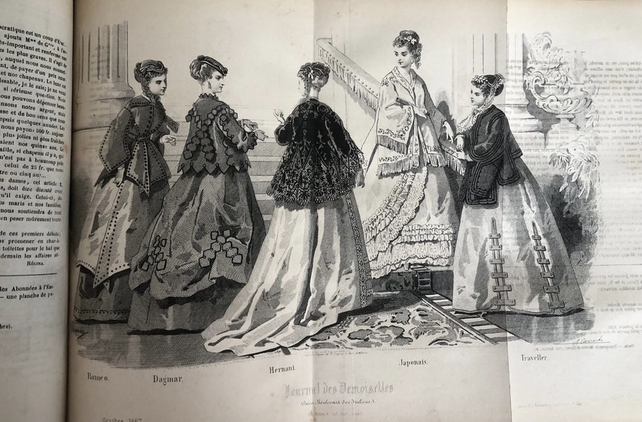 However, we can highlight the debut of japonism in fashion magazines in 1867 as an impact of the international exposition in Paris. For instance, the october edition of the Journal des demoiselles contained an illustration of clothes labelled “Japanese style”.