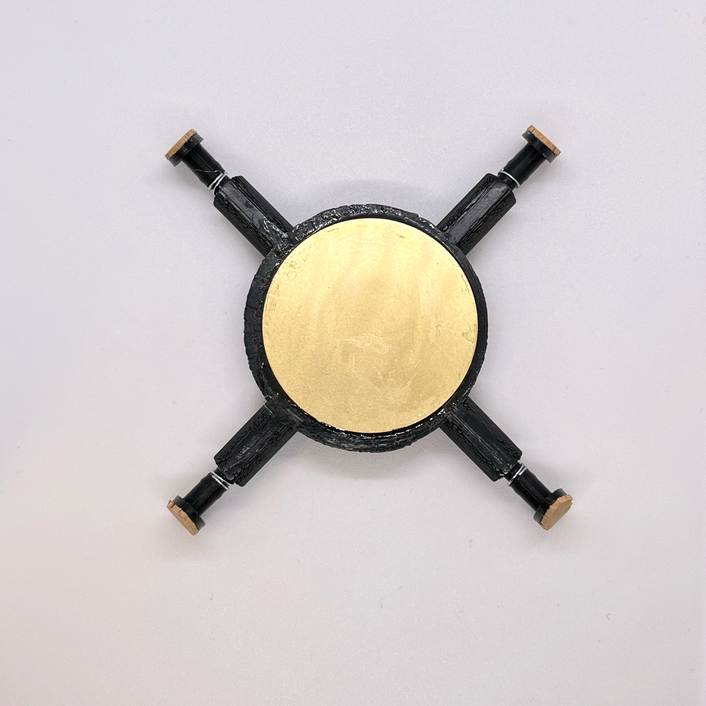 3D printed parts (from left): 1) Foot, spring and tube 2) Ring for testing diameter 3) Ring becomes tray with 4 spring-loaded feet