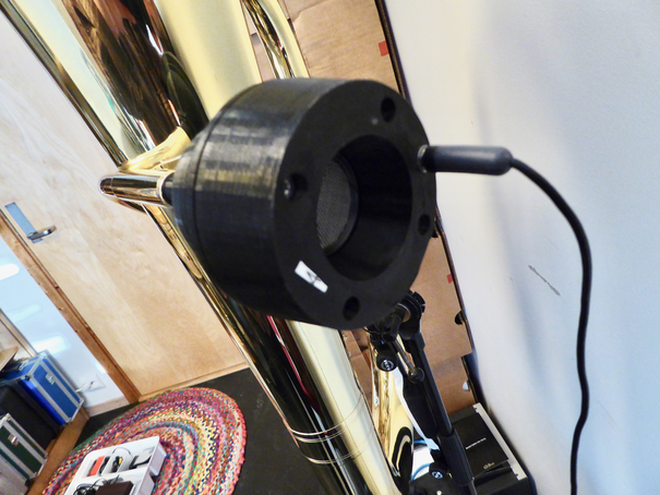 One of eight euphonium mouthpiece speakers developed by Geir Davidsen for Tuba/Me/Room. This has been modified to fit the foot of a bass flute