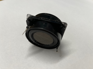 Foot joint mounted in speaker bottom and glued. Loudspeaker fitted, membrane pointing downwards. All parts 3D-printed