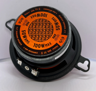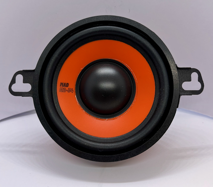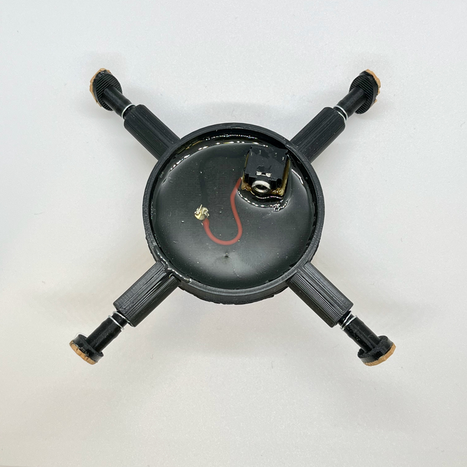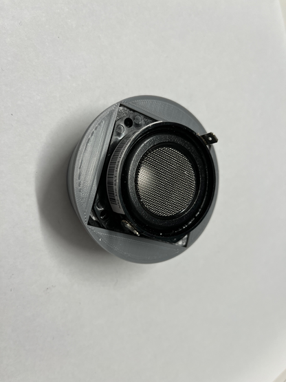Foot joint mounted in speaker bottom and glued. Loudspeaker fitted, membrane pointing downwards. All parts 3D-printed