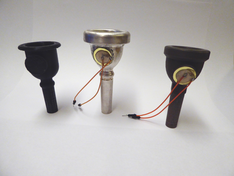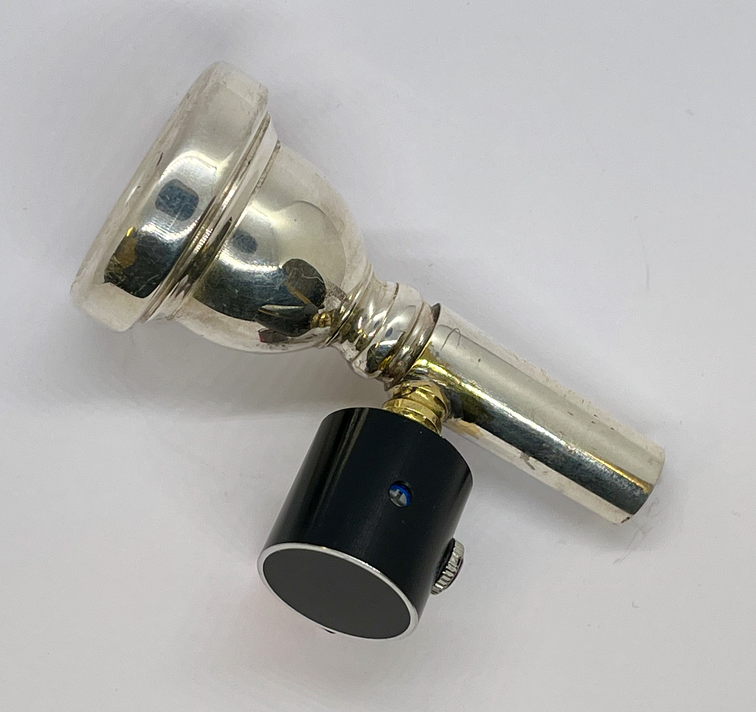 A hole is drilled in the mouthpiece and a threaded fitting adaptor is soldered over the hole. We have produced PiezoBarrel mouthpieces for trumpet, trombone and euphonium.