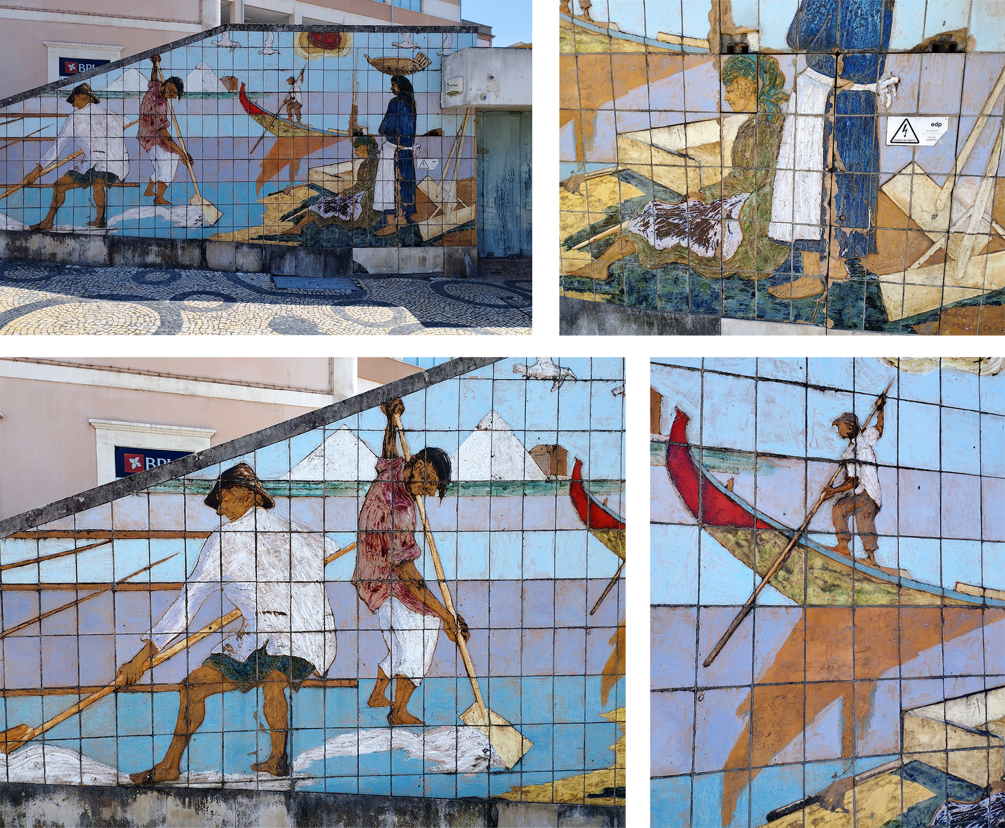 Fig 7: Fishermen and their wives fresco, entire mage and details, Aveiro, Portugal, variable dimensions © Michael Croft 2023