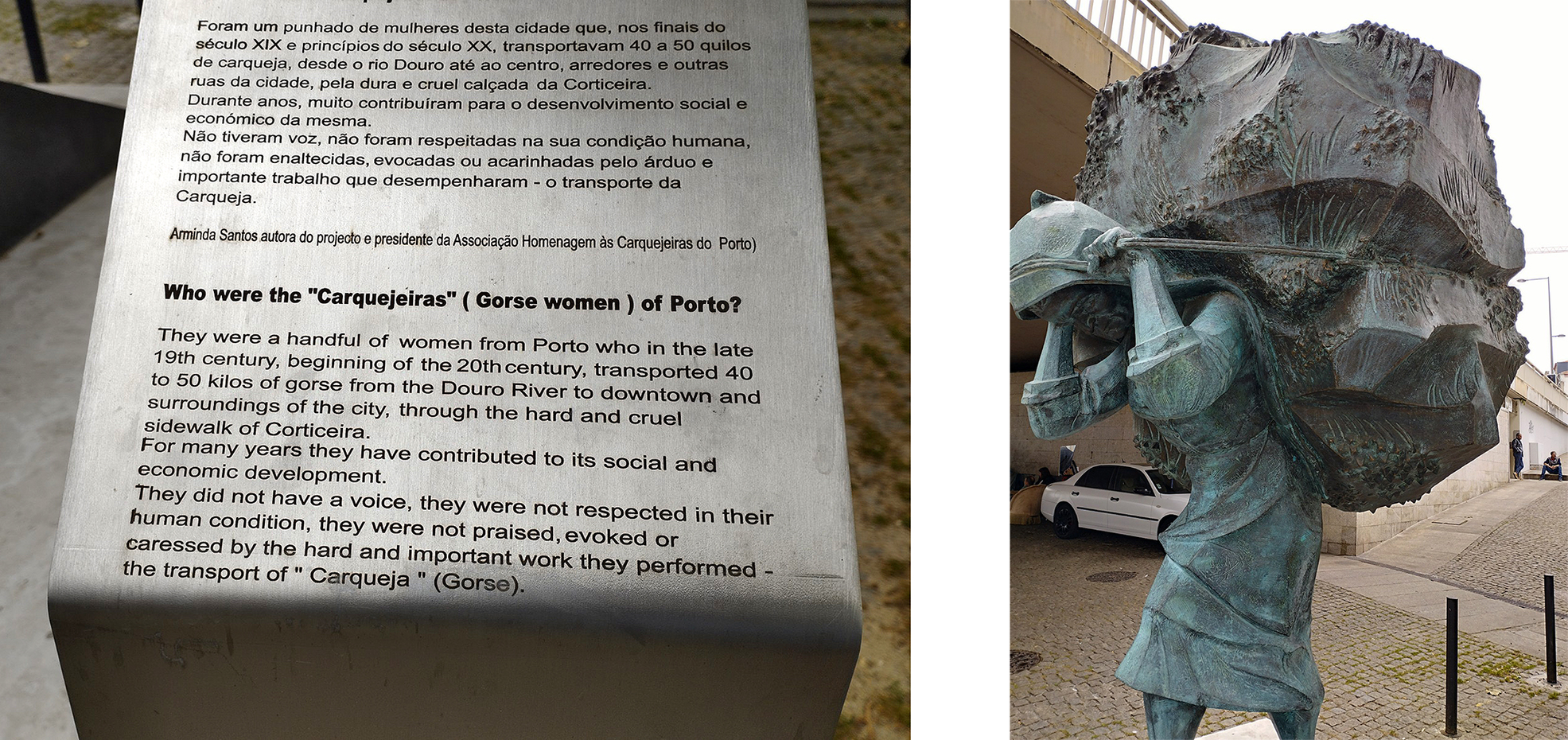 Fig 8: Plaque and sculptural monument to the 'Carquejeiras' (Gorse women) of Porto, variable dimensions © Michael Croft 2023