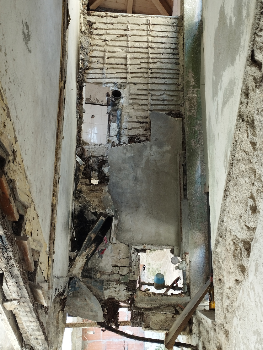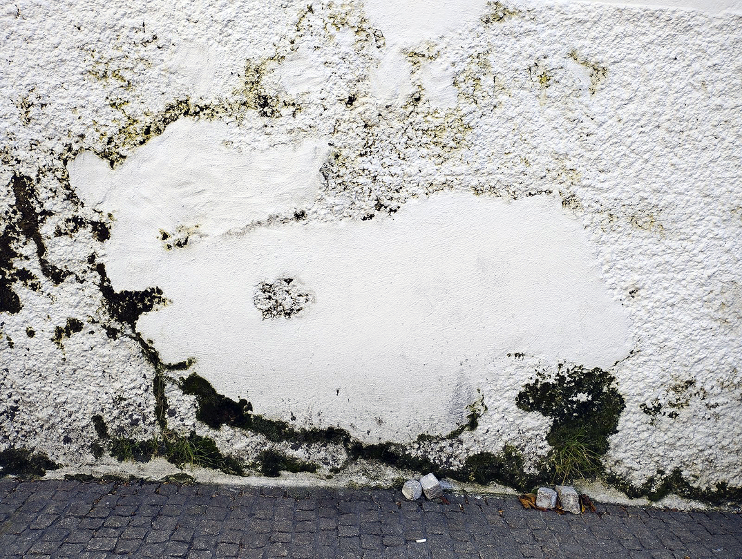 Figs 16/17: Photos of a wall subject to mould, and a view down through the ramins of a house during renovation, Porto, dimensions variable © Michael Croft